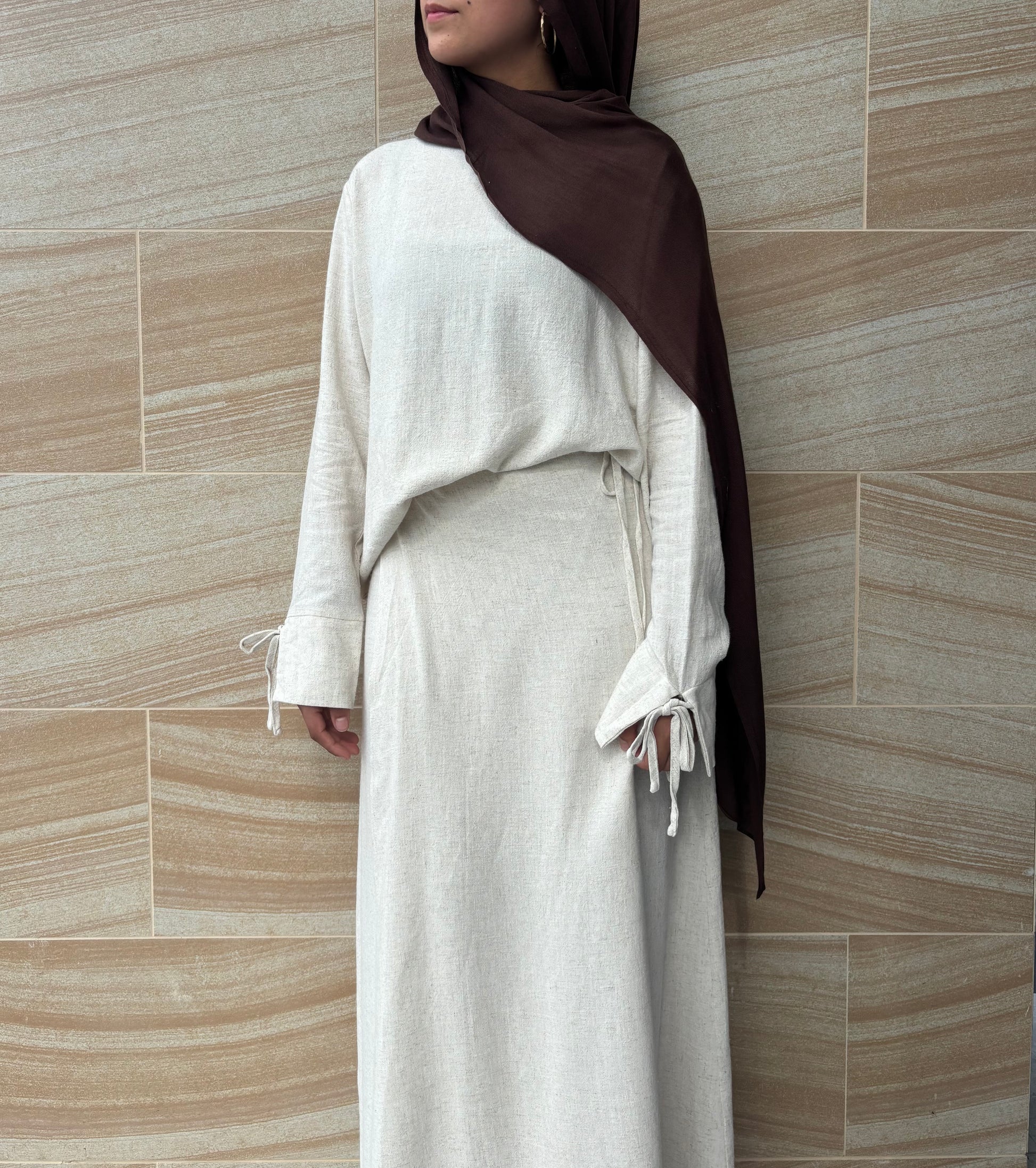 The Zahara Set offers effortless style and versatility. Crafted from high-quality linen, the flowy wrap skirt and versatile top can be dressed up or down. Choose from the warm tones of brown or cream to elevate your wardrobe. Experience comfort and elegance with this timeless set.